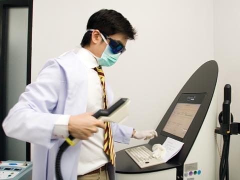 ここではレーザー照射は必ずオーク先生が行う。やさしい言葉をかけられながら照射開始。目の上に4重のマスクをかける。完全に目は塞がれた状態だ。痛みを 和らげる作用のあるジェルを顔に塗布後、そこへ人生最初の顔レーザーが当たる。ピピッという音とともに光を感じ、輪ゴムで弾かれたような感じだ。内心び びっていたほど痛くない。