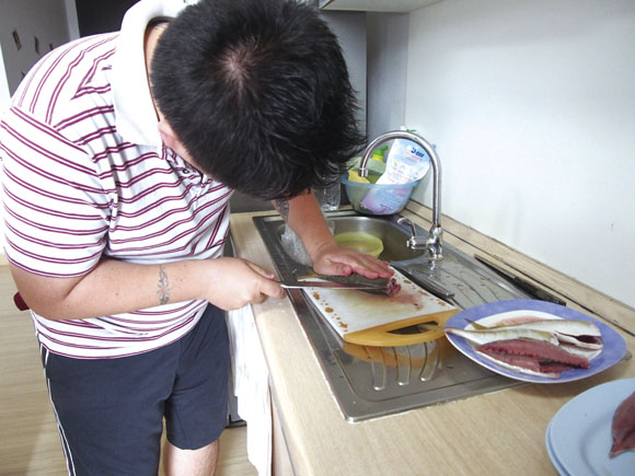 カツオは大きくてもアジのおろし方と変わらない。難しくはない代わりに血が大量に出るのはちょっと引いた。でも、アジもそうだし身が全然臭くなくて、切っているそばから「これは新鮮だな」と素人でもわかるほどだった。