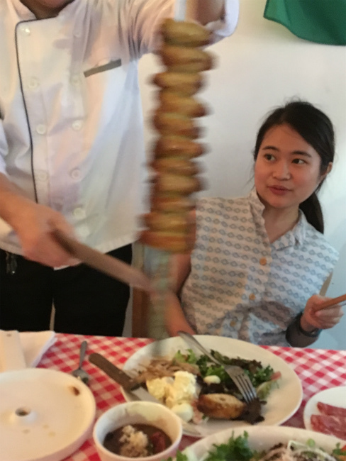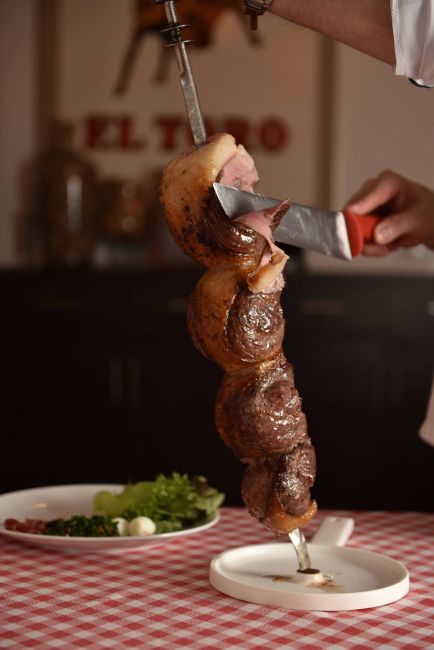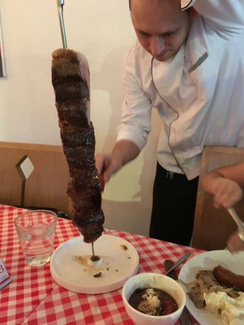 さて3度めのメインディッシュ、自慢のシュラスコを味わってみたいと思います。どうぞ。