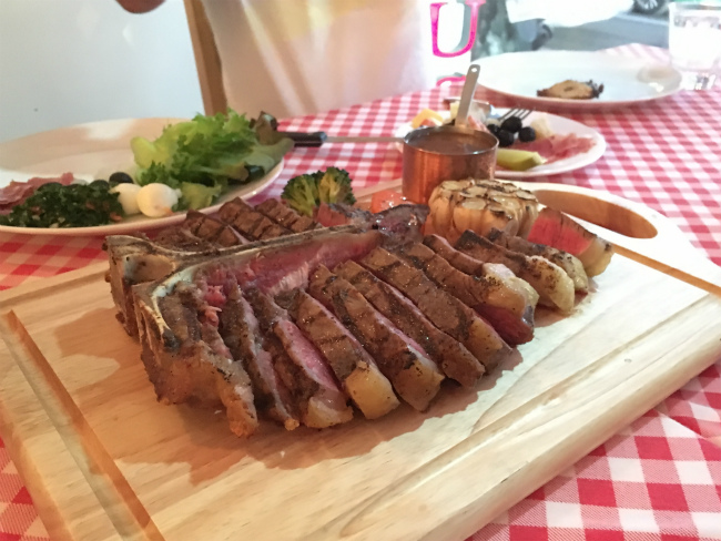 こちらに至ってはタイ産和牛の熟成肉のステーキ1850B!(近々価格改定予定)今回は4人で伺いましたが、それでも充分満足なものすごいボリューム!なにせ500gありますから!