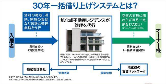 そこでよく聞かれるのが、「不動産の管理・運営なんてできない」という声。へーベルハウスでは、管理・運営を代行する「30年一括借り上げシステム」があります。これなら空室の心配がなく、毎月一定の額がお給料のように入ってきます。賃貸人への対応も不要なので、海外にいらっしゃる方でも安心してアパート経営ができるのです。