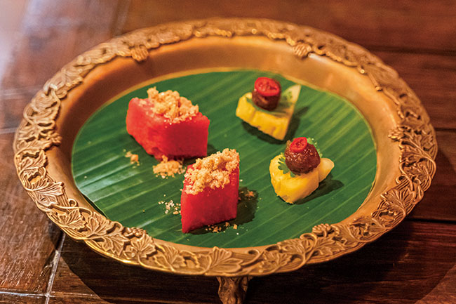 「プラヤ・ダイニング」の一番の特徴は、700年以上前に食べられていたスコータイ王朝をはじめ、アユタヤ王朝、そして現在まで続くラタナコーシン王朝の各世代と、それぞれの時代を代表する料理を体感することができること。他では決して出逢うことができない料理も、メニューに名前を連ねています。