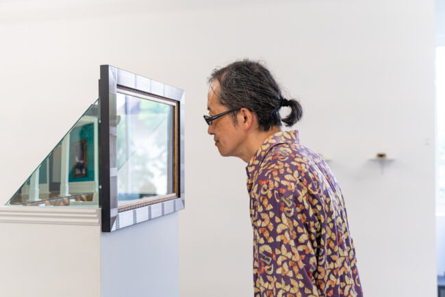 終始にこやかな笑顔で、どの質問にも丁寧に答えてくださった杉山さん。彼の作品を覗き込んだ瞬間、内部に広がる非現実的な世界観に迷い込み、思わず驚きの声を上げてしまいました。「記憶」は誰しもにある普遍的なもの。杉山さんの個人的な作品を通じて、鑑賞者である私たち自身の記憶も喚起されるような気がしました。コロナ禍を経てさらなる進化を遂げた杉山さんが、今後どんな作品を届けてくれるのか楽しみでなりません(日向)杉山健司 個展「IIM – Inside the Head」