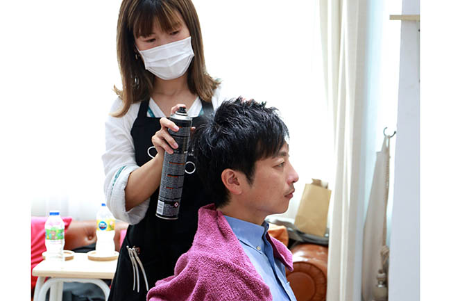 スマートカジュアルということで、普段から爽やか系な印象の飯田さんを、さらに爽やかにそして少し華やかな印象をもたせ、ホテルディナーやカジュアルディナーな場面にもバチっと決まるようなヘアスタイルに仕上げました。