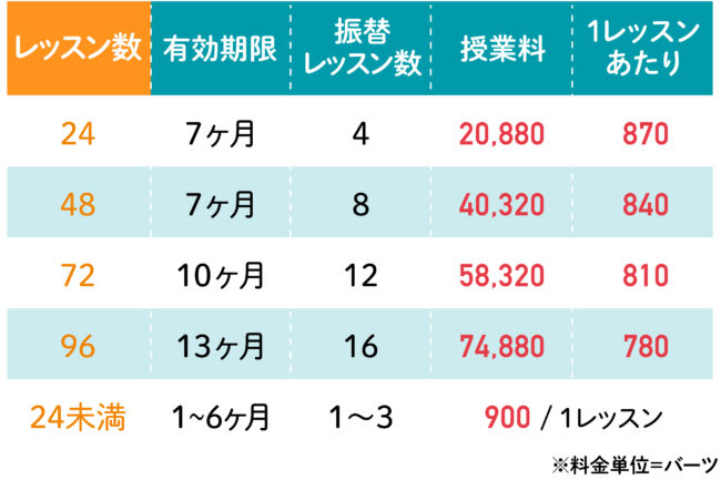 各コースともに振替レッスン数が割り当てられているのは、とっても便利ですよね。