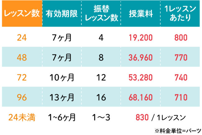 - 1回当たりのレッスン数は2レッスン以上の受講も可能です