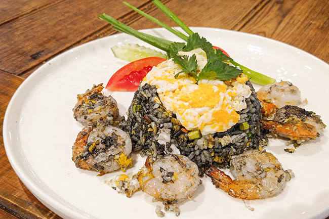 イカスミの旨味感じる「Black Squid Ink Fried Rice」(190B)