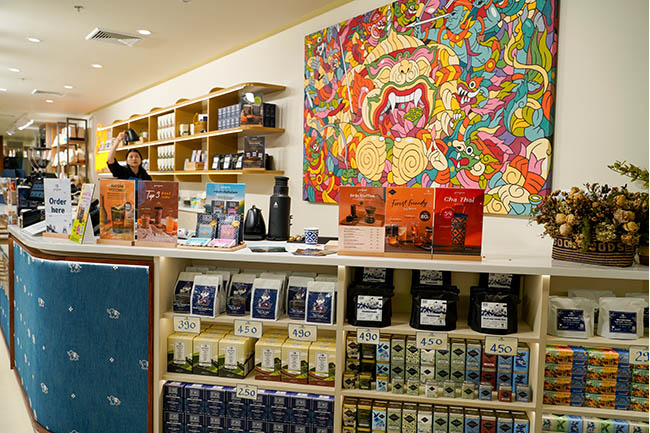 Good Goodsのコンセプトストアには、商品展示だけでなくカフェスペースやコーヒー試飲ゾーンを併設することもあります。