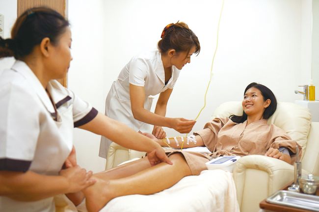 ※ビタミンCは水溶性のため、口からビタミン剤を摂取しても過剰分は尿として排出されます。直接点滴で静脈内に高濃度のビタミンCを大量投与すると、経口摂取の数十倍の量が血管内に行き渡り、ビタミンCを必要とする器官の隅々まで届けられます。