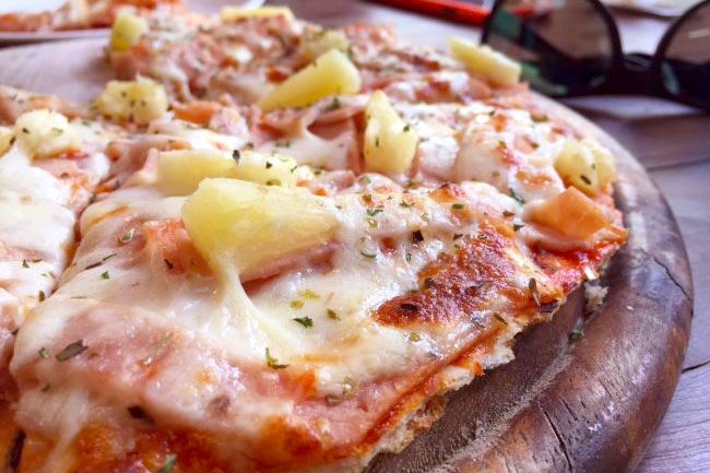 料理も豊富で、私はピザを食べました。写真のピザは190Bです。ちなみに、この店はコロナ対策もバッチリ。席には飛沫を防ぐ板が用意されていました。