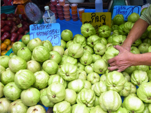 ファラン(グアバ)1キロ25B、奥には1キロ20Bの看板も